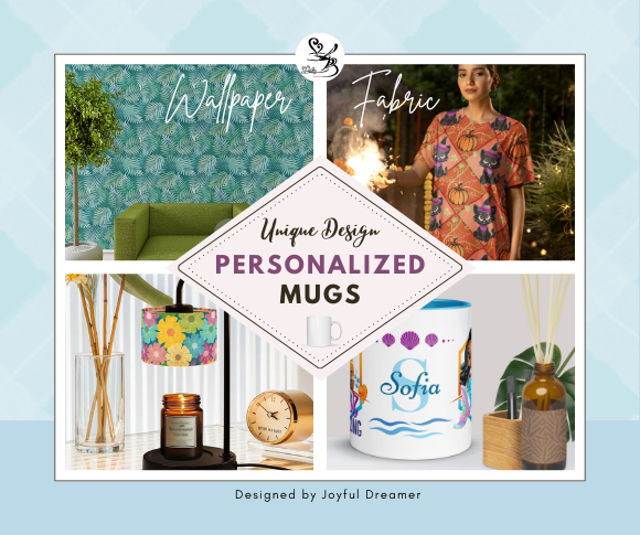 We offer custom design services for fabrics, wallpapers, personalized gifts. Whether it's a pet portrait mug or a custom notepad, we can bring your idea to life.