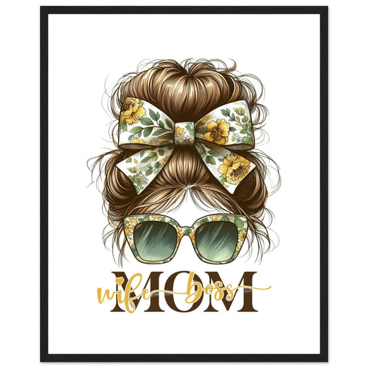 Stylish Messy Bun Mom Poster – 'Wife Mom Boss' with Floral Bow, Perfect Gift (Green)