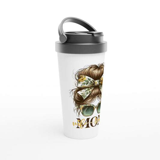 Stylish Messy Bun Mom Mug - 15oz Stainless Steel, 'Wife Mom Boss' Design, Perfect Mother's Day Gift (Green)