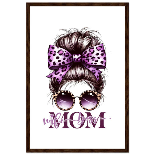 Stylish Messy Bun Mom Poster – 'Wife Mom Boss' with Leopard Prints Bow, Perfect Gift (Purple)