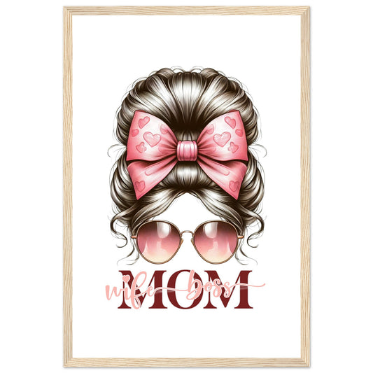 Stylish Messy Bun Mom Poster – 'Wife Mom Boss' with Pink Heart Bow, Perfect Gift (Pink)