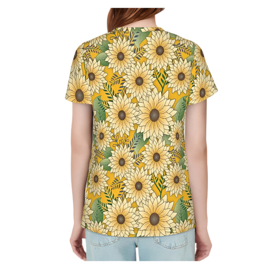 Women's Short Sleeves T-Shirt | Sunny Sunflower Floral Design