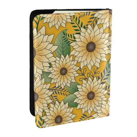Large Passport Holder for Travel (DoubleSided) | Bold Floral Design Yellow Sunny Sunflower Garden