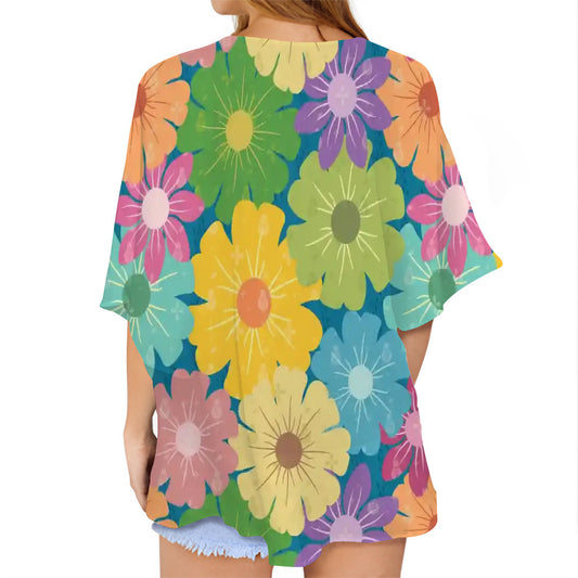 Women's Chiffon Blouse Cardigan | Vibrant Daisy Floral Block Prints Design
