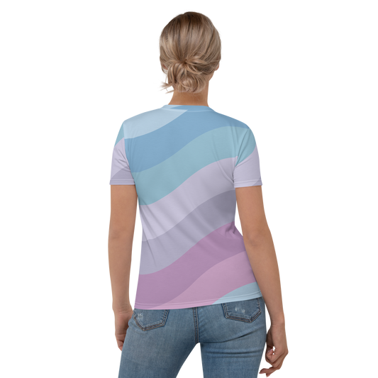 Women's Crew Neck T-Shirt | Pastel Rainbow Wave Strips