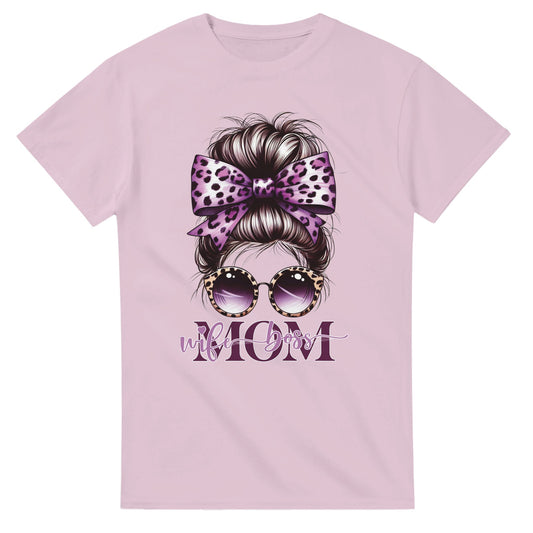 Stylish Messy Bun Mom T-Shirt - Bold Purple Leopard Prints Bow | Wife Mom Boss Tee (Purple)