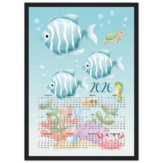 Classic Matte Paper Wooden Framed Poster | 2026 Calendar Under the Sea Creatures