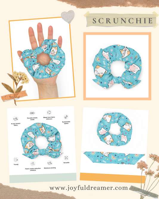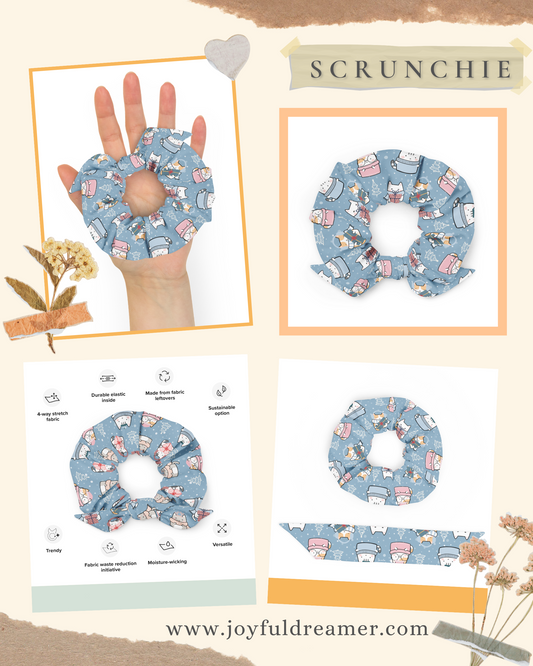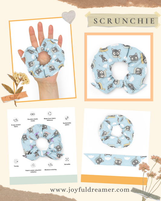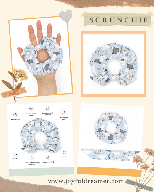 Scrunchie | Cute Cats Cloud Kit LightBlue Background