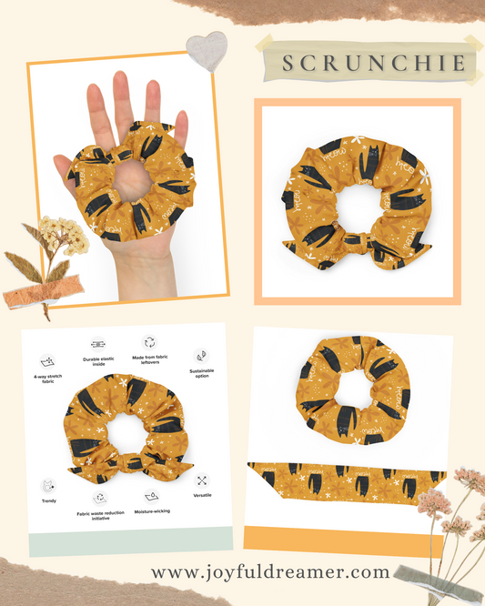 Scrunchie | Cute Black Cat Meow Yellow Background