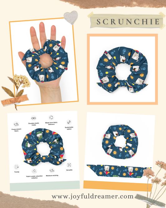 Scrunchie | Cute Cat Paw Sun Flower Blue Background