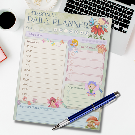 Notepad (Large) | Personal Daily Planner Fairy Butterfly Mushroom