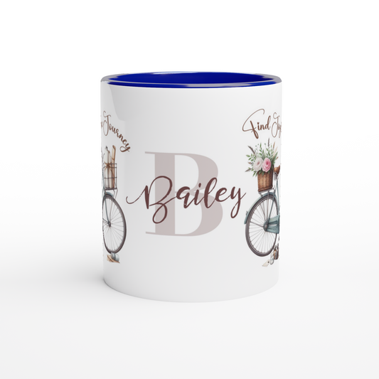 Personalized 11oz Ceramic Mug | Find Joy in the Journey Floral Vintage Bicycle Design