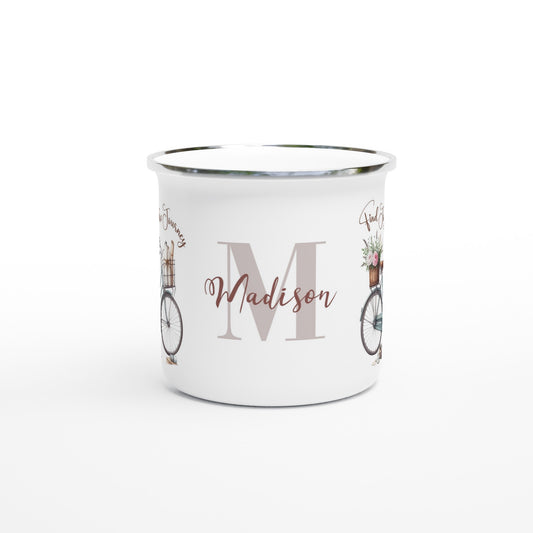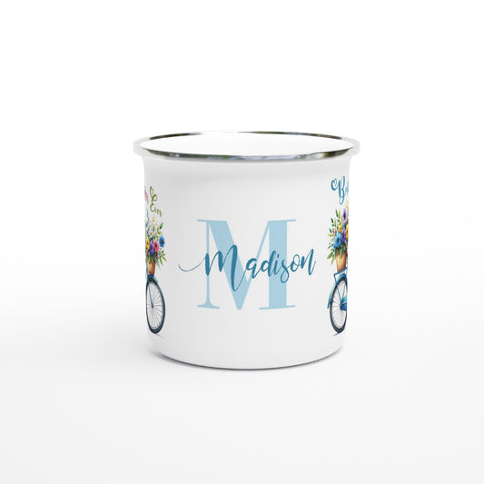 White 12oz Enamel Mug | Best Mom Ever Floral Bicycly Design