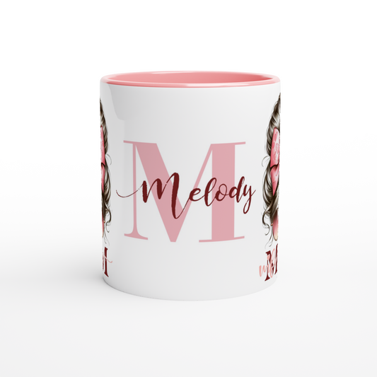 Personalized 11oz Ceramic Mug | Messy Bun Mom Wife Boss (Pink)