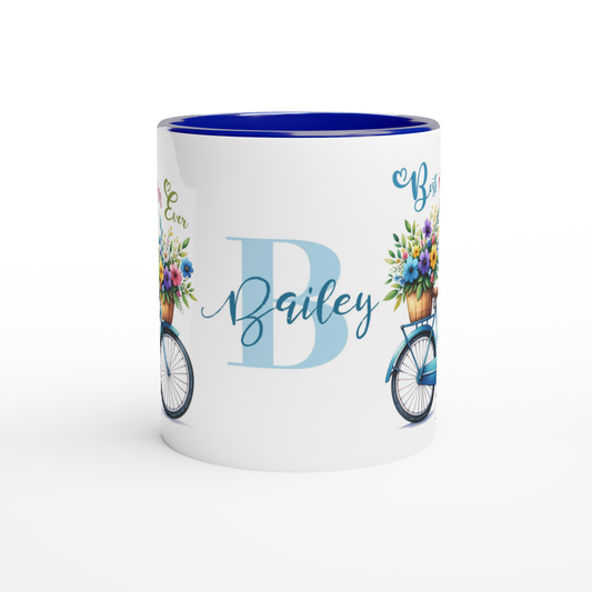 Personalized 11oz Ceramic Mug | Best Mom Ever Floral Bicycle Design