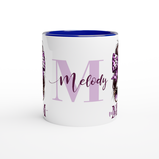 Personalized 11oz Ceramic Mug | Messy Bun Mom Wife Boss (Purple)