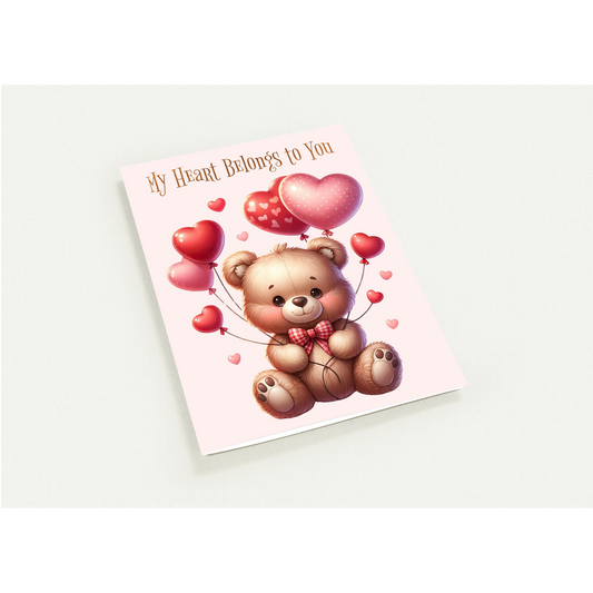 Pack of 10 Greeting Cards (US & CA) | Valentines Day Cute Bear Holding Balloons