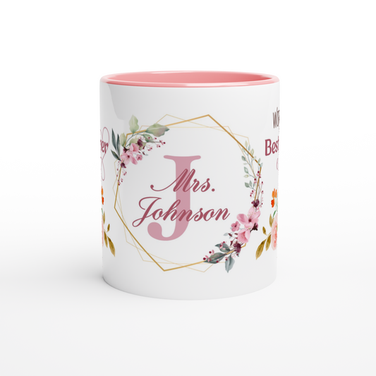 Personalized 11oz Ceramic Mug | World's Best Teacher Ever Floral Themed
