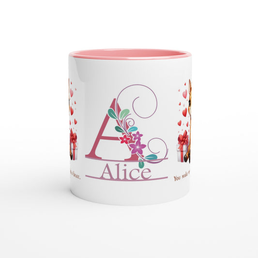 Personalized 11oz Ceramic Mug | Adorable Cats Meow Hearts Themed