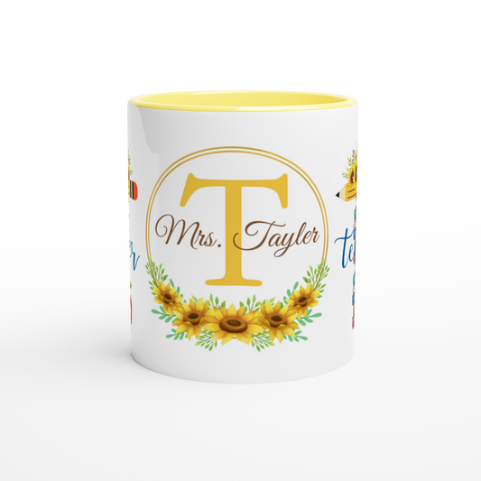 Personalized 11oz Ceramic Mug | T is for Teacher Floral Themed