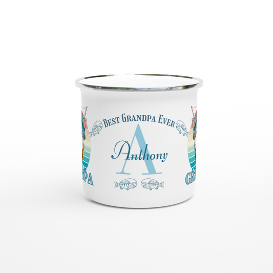 Enamel Mug White 12oz | Reel Cool Grandpa Best Grandpa Ever Cat Themed