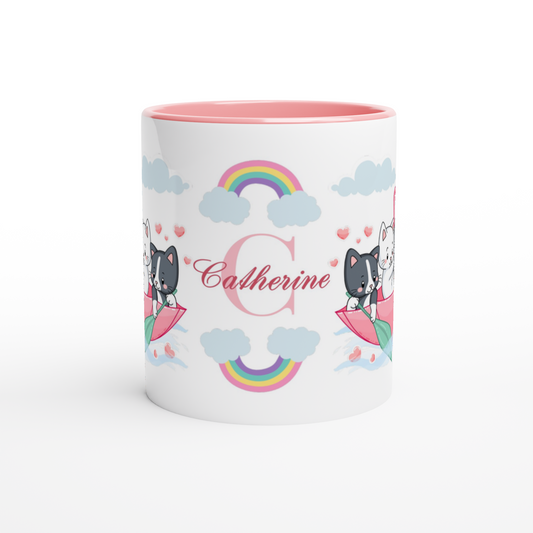 Personalized 11oz Ceramic Mug | Cats in the Umbrella Boat with Hearts