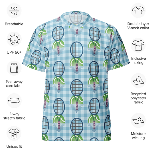 Recycled Unisex Sports Jersey | Court Sports Tennis Blue Checker Board Background