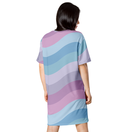 T-Shirt Dress | Pastel Rainbow Wave Strips