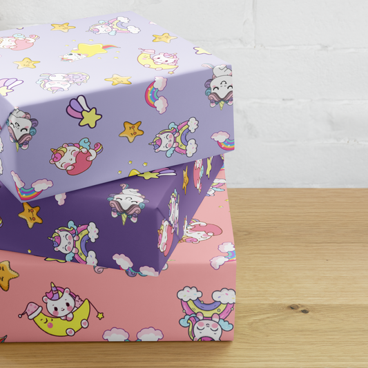 Wrapping paper sheets | Unicorn Rainbow Star Themed