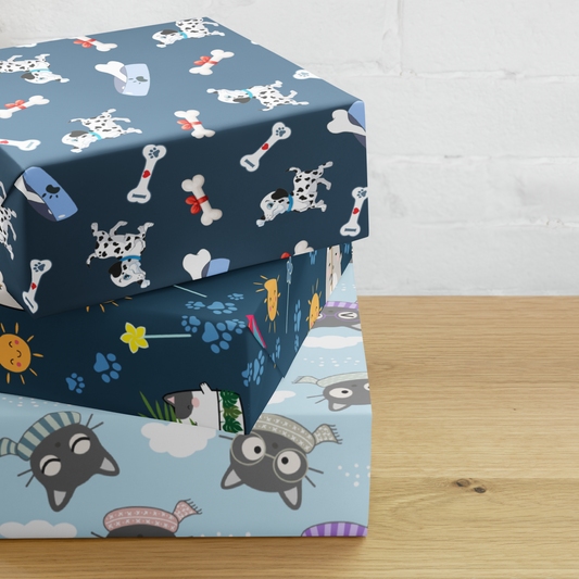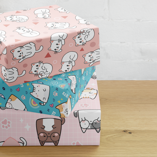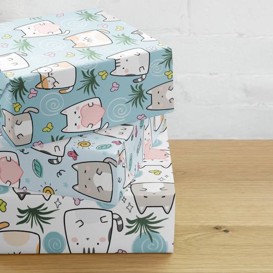 Wrapping paper sheets | Adorable Cat Love Blue Themed