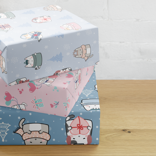 Wrapping paper sheets | Winter Holiday Snowflake Pet Themed